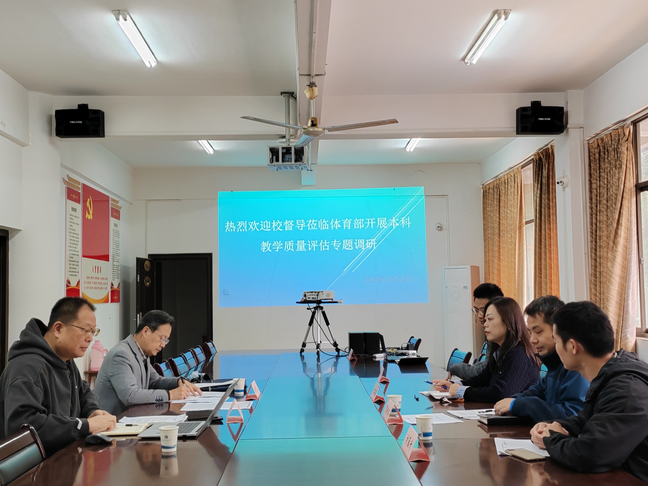 (通讯员 陈琰)2025年10月20日上午,体育部在二楼会议室召开本科教学质量评估专题调研座谈会。校督导韩可卫教授、乐建军副教授出席指导,体育部直属党支部书记、主任万莉莉、教学副主任贺新家、教研室主任吴东、刘藤升,教学秘书陈琰参会,贺新家主持会议。