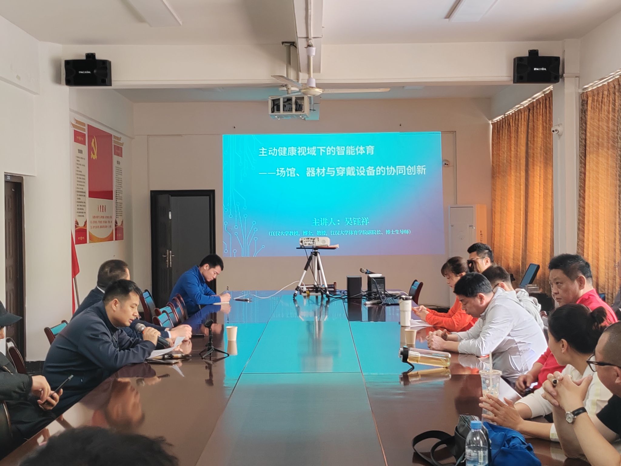 讲座中,吴钰祥教授围绕主动健康核心理念,依次对智能穿戴、智能器材、智能场馆建设进行深入解读,系统阐述“人-器-场”协同创新机制,并结合前沿技术与实践案例,全面介绍智能体育在大众健身、竞技训练、康复医疗等领域的应用成果与发展趋势,有效拓宽了师生的科研视野与创新思路。